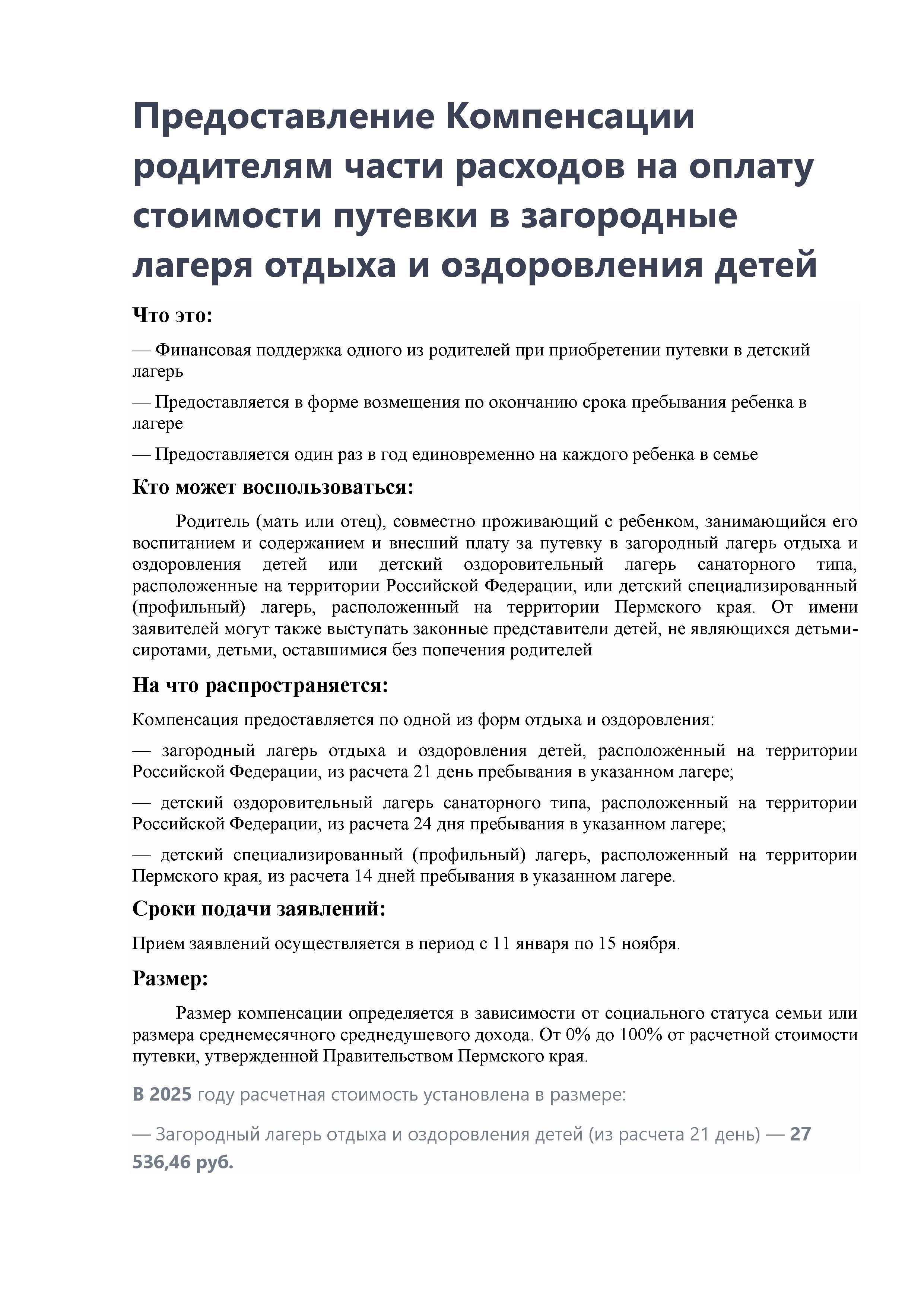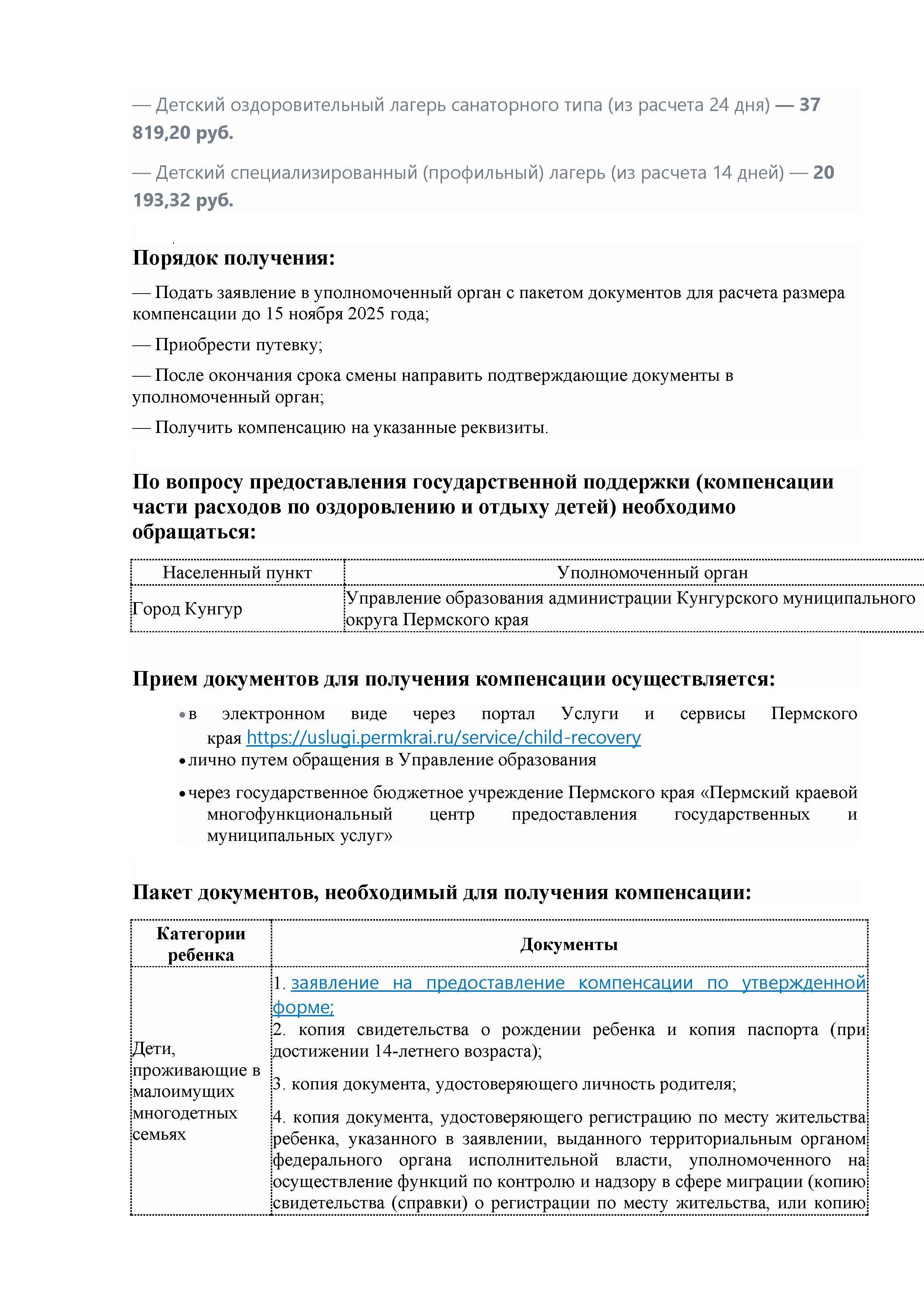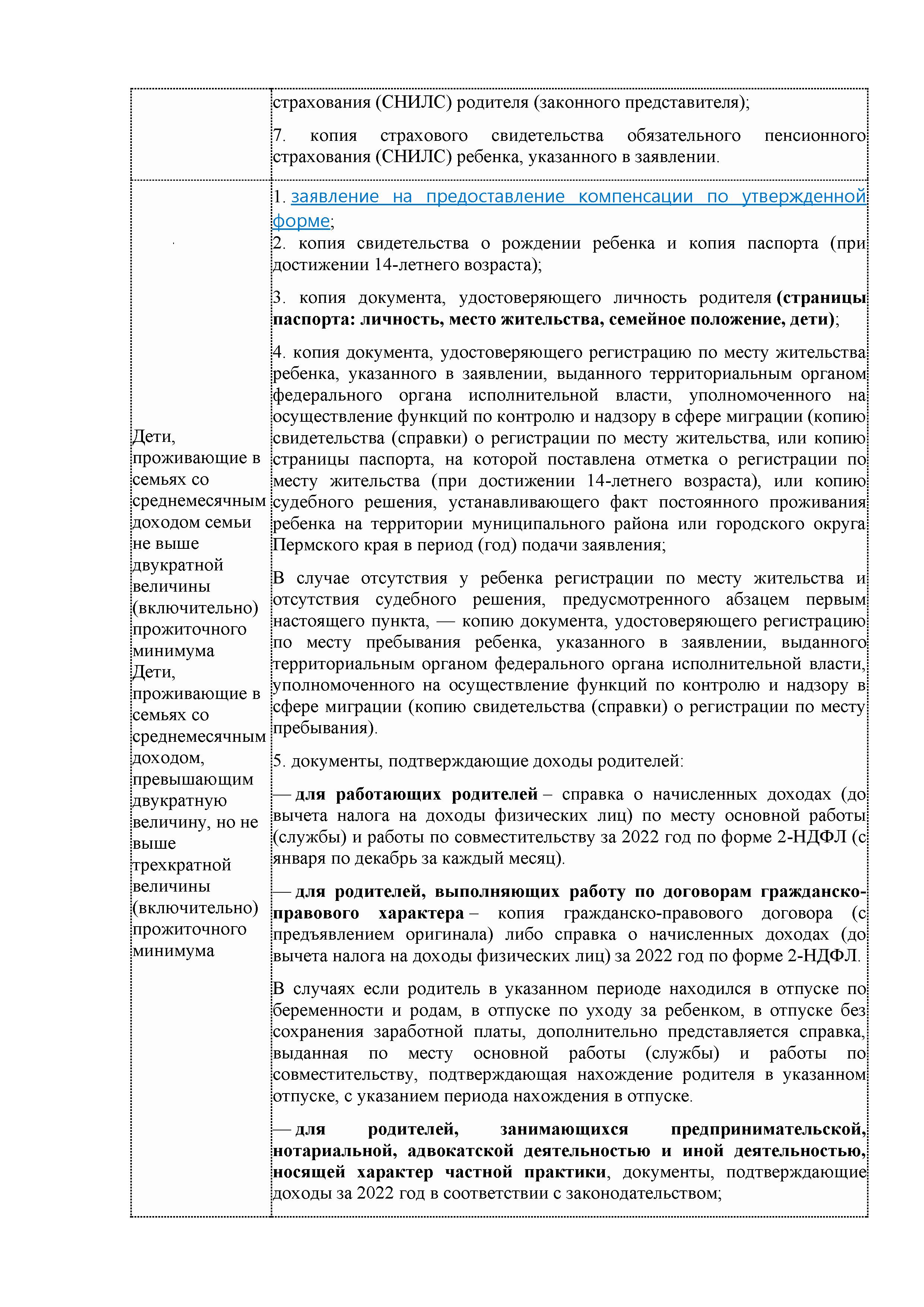 - ФОРМА ЗАЯВЛЕНИЯ - Заявление на предоставление компенсации родителям части расходов на оплату стоимости путевки в на предоставление компенсации части расходов на оплату стоимости самостоятельно приобретенной путевки в загородный лагерь отдыха и оздоровления детей, детский оздоровительный лагерь санаторного типа, расположенный на территории Российской Федерации, детский специализированный (профильный) лагерь, расположенный на территории Пермского края