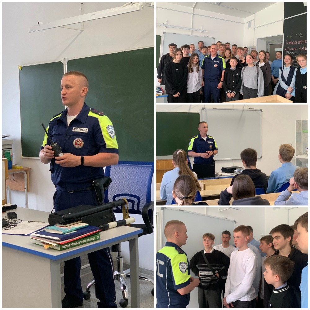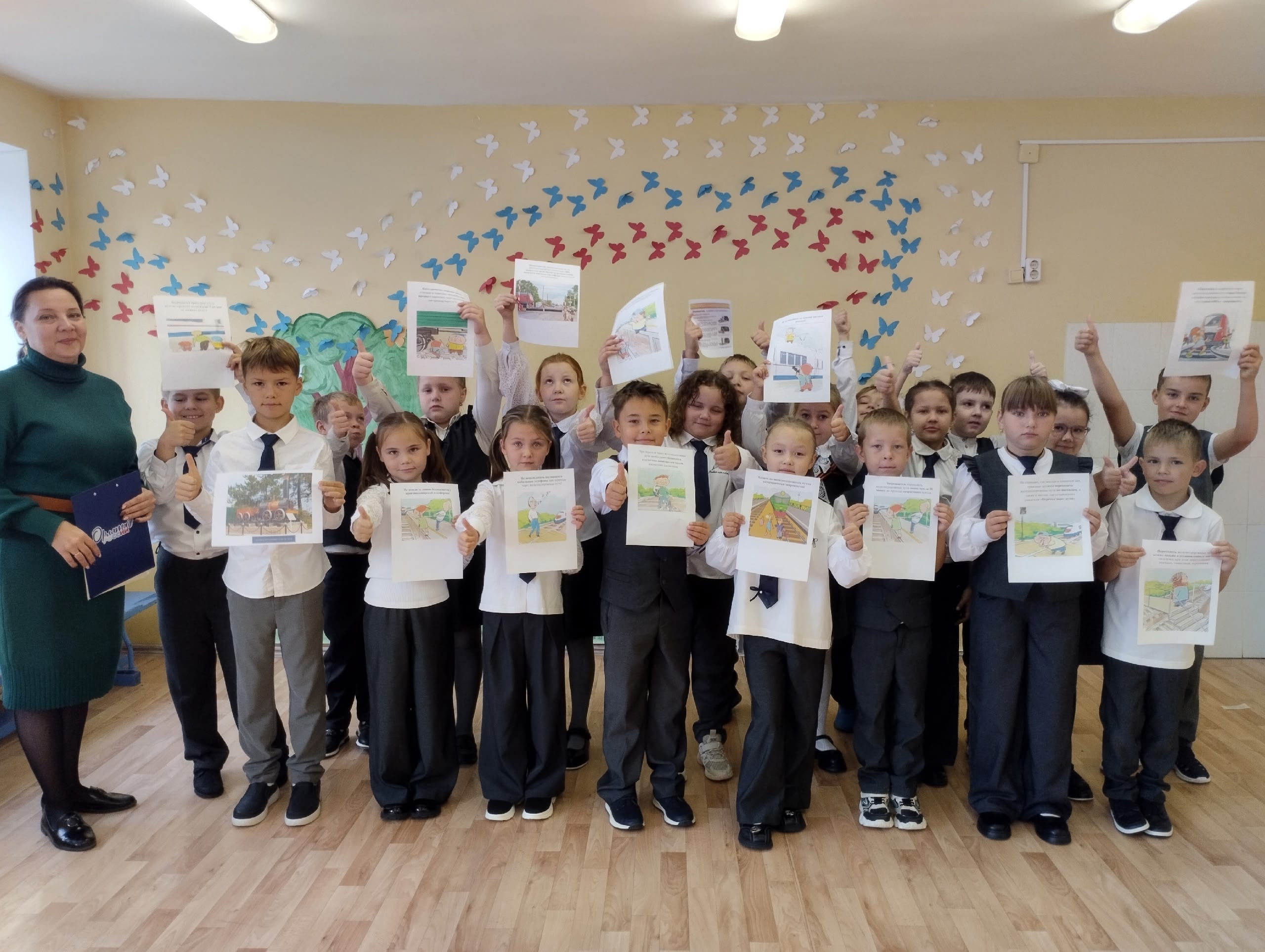 Ученики вместе с инспектором ГАИ повторили правила дорожного движения для пешеходов, вспомнили места, предназначенные для безопасного перехода проезжей части, требования сигналов светофора, алгоритм перехода, разобрали ситуации на дорогах.
