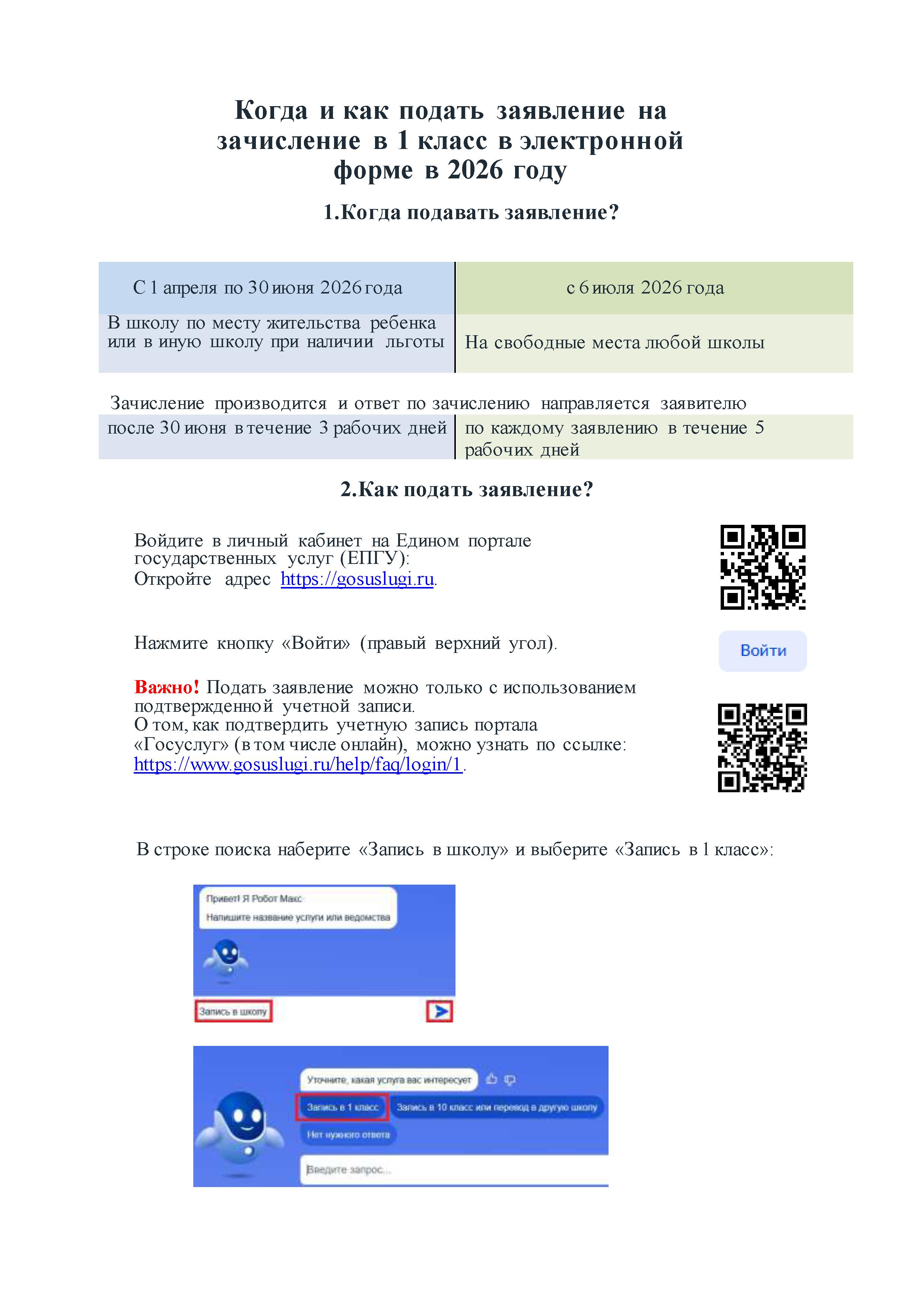 Прием заявлений в 1 класс: c 1 апреля 2026 года с 08.00 — 12.00