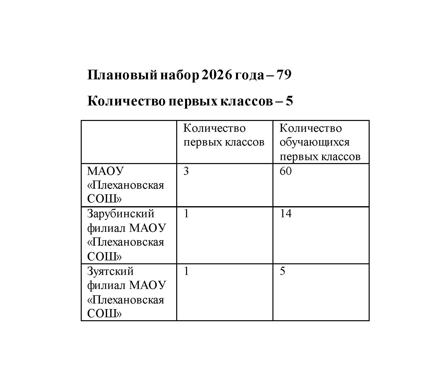 Приём граждан в 1 класс в МАОУ "Плехановская СОШ"