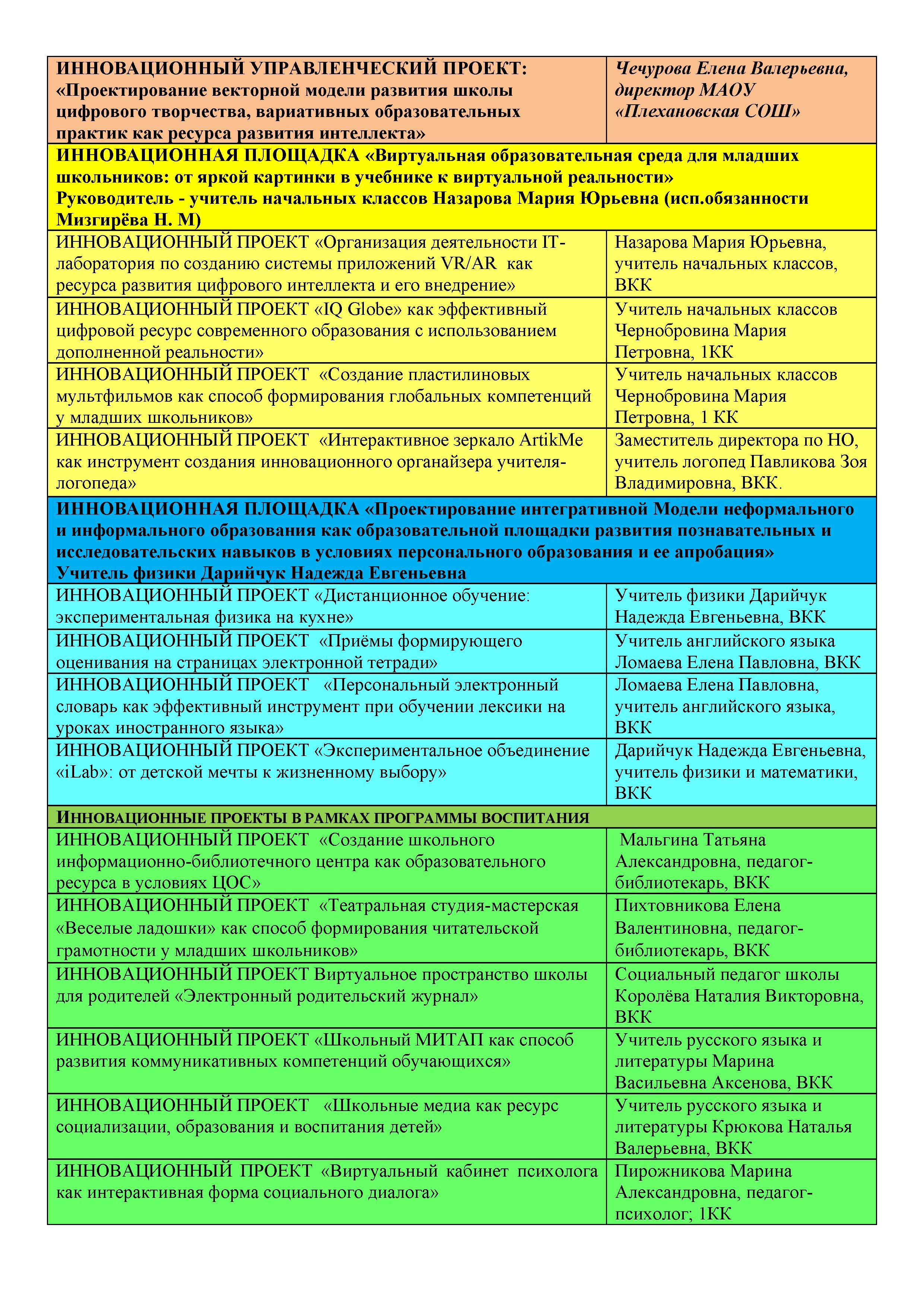 Проектирование векторной модели развития школы цифрового творчества, вариативных образовательных практик как ресурса развития интеллекта»
