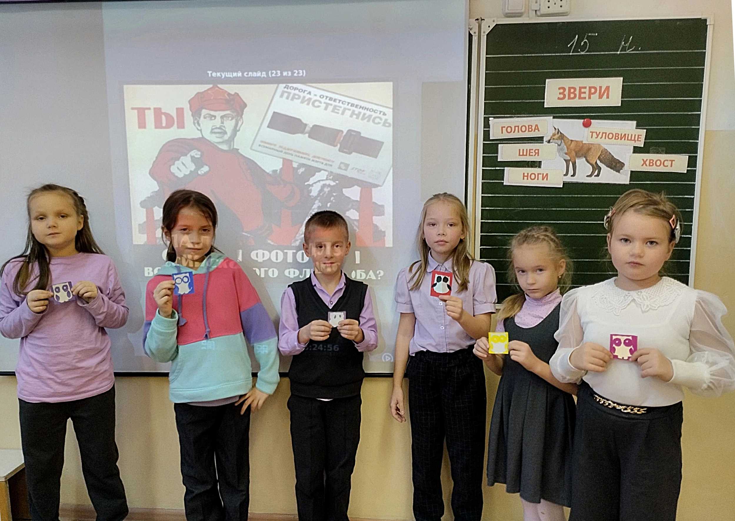 15 ноября 2024г в рамках профилактической акции "Самая заметная школа" отряд ЮИД 1в класса (рук.Волкова Е.И.) стал участником мастер-класса «Фликер – мой телохранитель», направленного на повышение уровня безопасности юных пешеходов.