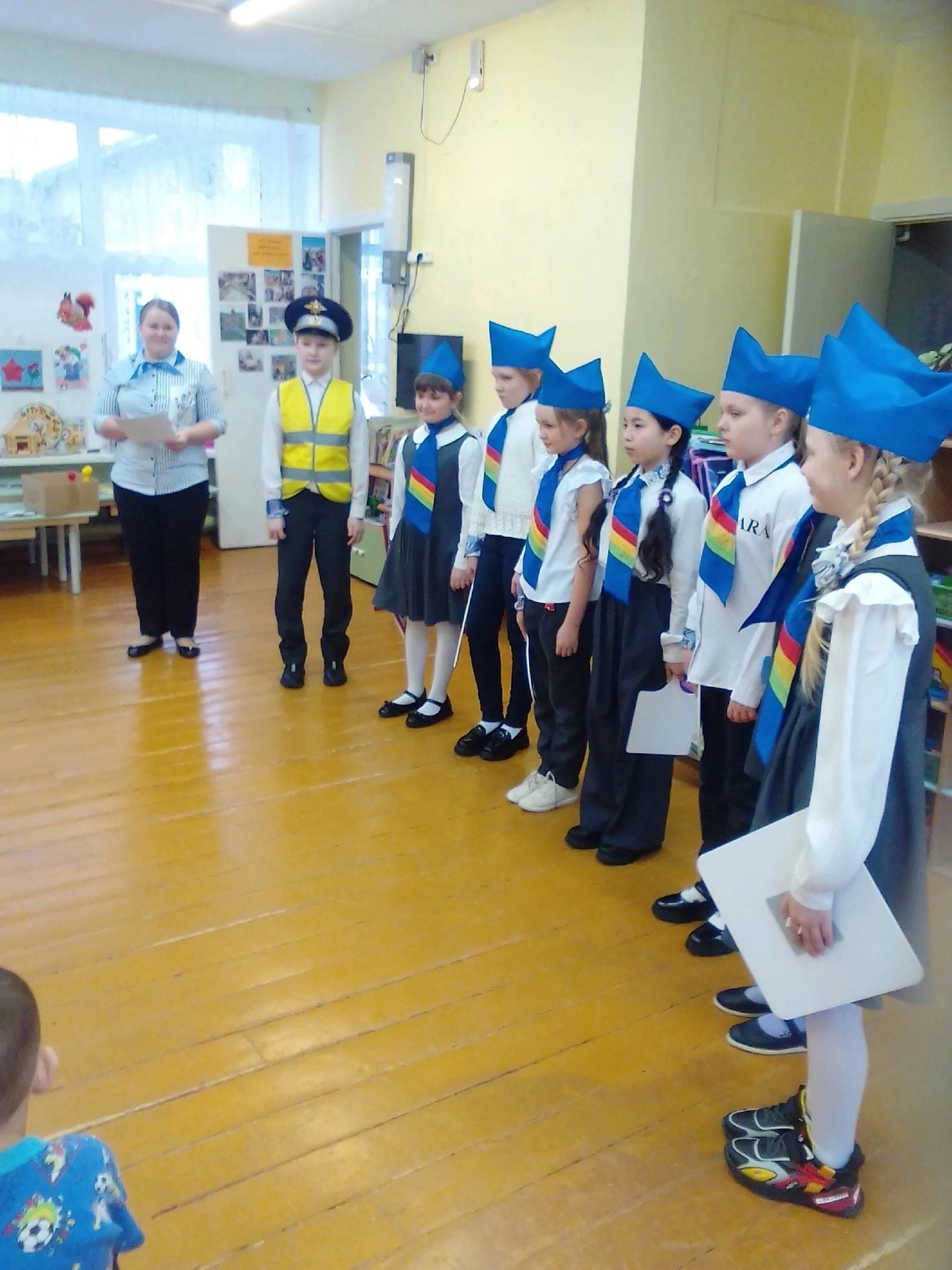 Юные инспекторы дорожного движения напомнили ребятам основные правила безопасности на дорогах для пешеходов и водителей, важность использования световозвращающих элементов на одежде и рюкзаках