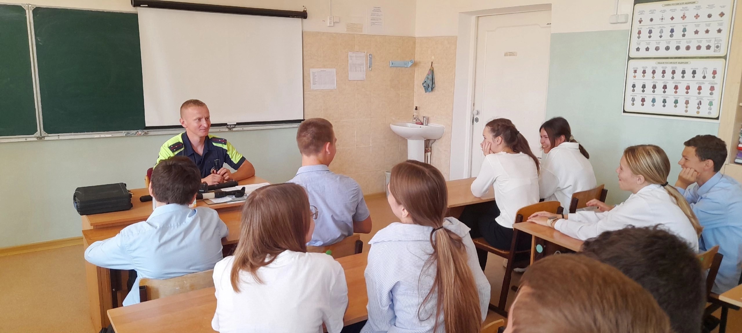Подобные встречи с сотрудниками ГИБДД проходят в нашей школе регулярно. Ребята всегда с интересом слушают информацию, активно отвечают на вопросы и задают свои вопросы инспектору
