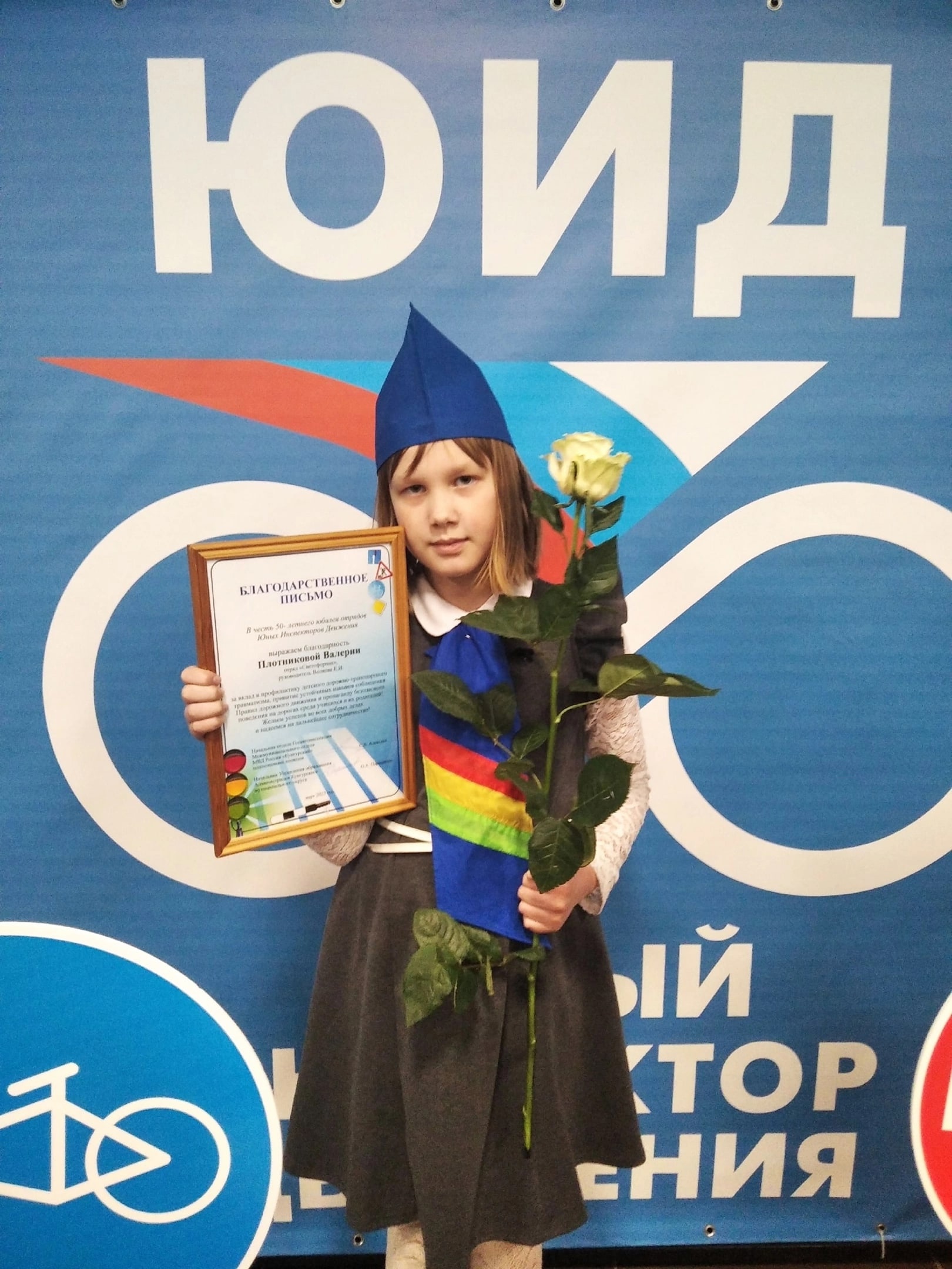 •За активное участие и пропаганду безопасного поведения на дорогах среди учащихся благодарственным письмом награждена ученица 3б класса Плотникова Валерия.