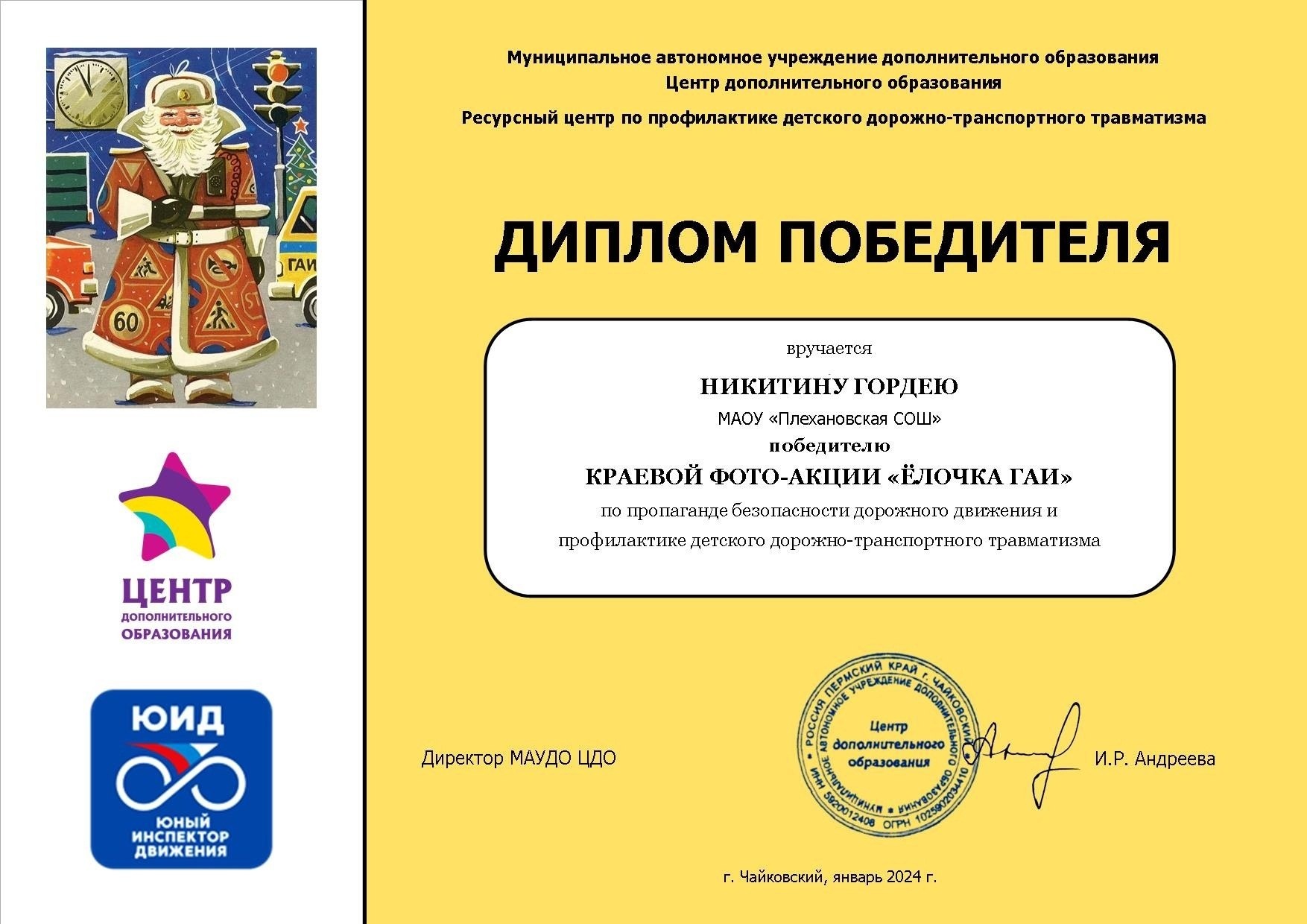 Все участники получили именные сертификаты начальника Управления Госавтоинспекции ГУ МВД России по Пермскому краю, а также интересный опыт участия в краевом конкурсе.