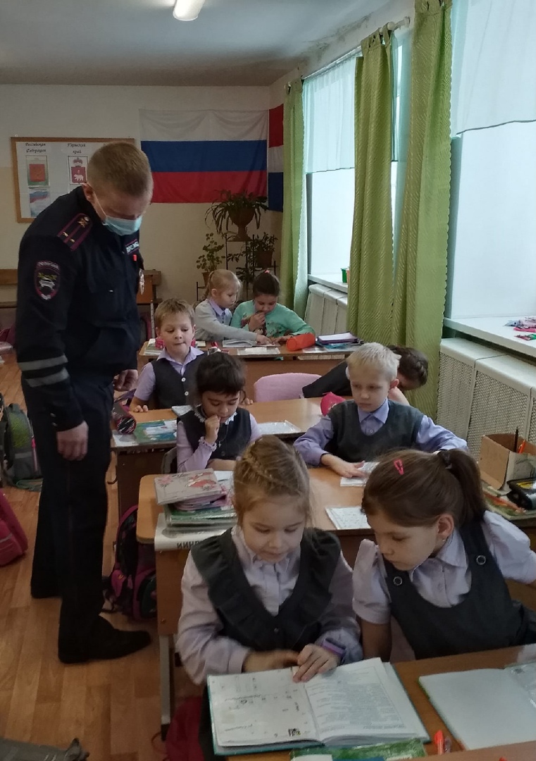22 декабря 2022 г в рамках профилактической акции "Зимние каникулы" состоялась встреча обучающихся 1 классов с инспектором ГИБДД Поспеловым Л.Ю.