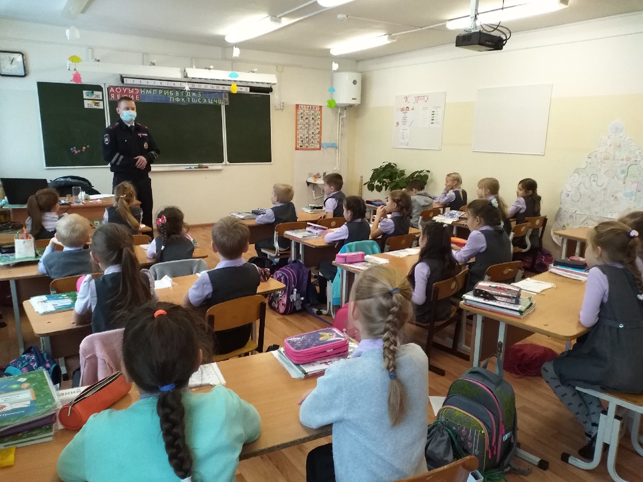 Ребята с интересом слушали информацию, отвечали на вопросы инспектора и задавали вопросы по различным ситуациям, возникающим на дороге. Инспектором были отмечены хорошие знания правил дорожного движения учениками нашей школы. По окончании беседы инспектор ГИБДД проверил у школьников наличие схем-маршрутов "Дом-Школа-Дом", провел викторину по ПДД и оставил в подарок каждому ученику светоотражающий брелок.
