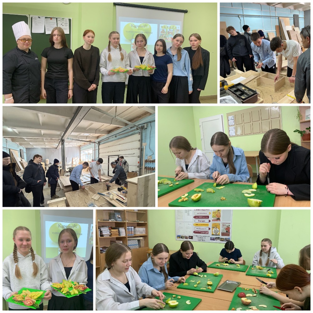 Ребята посетили учебный кабинет с видом на теплицу, заглянули на профессиональную кухню, где готовят пекарей и кондитеров, посетили различные аудитории, актовый зал, библиотеку, посмотрели видеоролик о том, чем живёт колледж и специалистов каких профессий выпускает.